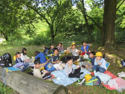 1日目の午前中は、班ごとに地図を頼りにチェックポイントを探す森の木オリエンテーリングを行いました。その後、お弁当をおいしくいただきました。