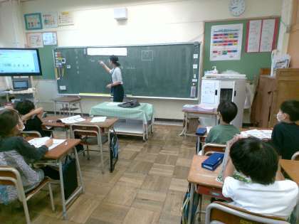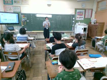 今日は外国語活動がありました。数の練習の歌を歌ったり、いくつあるのかを英語で答えたりしました。