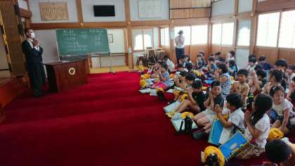 総合的な学習の時間に、蜷川の地域のことを調べています。第2弾として「浄徳寺」にお邪魔させていただき、お寺の住職さんにお話を伺いました。子供たちは住職さんのお仕事やお寺の歴史についてなどたくさんの質問をし、学んでいました。