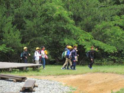 富山市子どもの村で宿泊学習を行いました。仲間と協力して活動し、互いに支え合い認め合う姿がたくさん見られました。1日目、村内ビンゴの様子です。