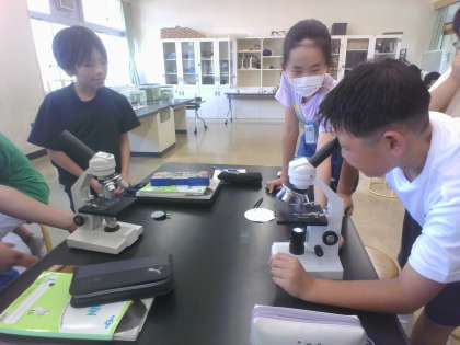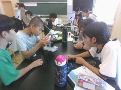 6年生の理科の学習で、水の中の小さな生き物を観察しました。汲んできた田んぼの水を顕微鏡で見ると、ミジンコやゾウリムシなどが見え、子供たちは大喜びでした。とても楽しそうに観察していました。