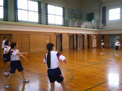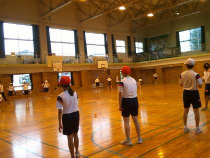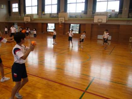 スポーツ指導員の方に来ていただき、ソフトボール投げのこつを教わりました。6年生は9月に富山市チャレンジ陸上記録会に参加する予定なので、今回教えていただいたことを生かして一人一人の記録の向上につなげていきたいと思います。