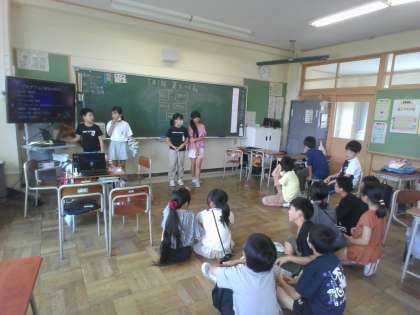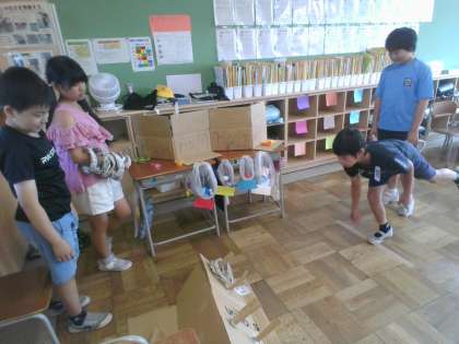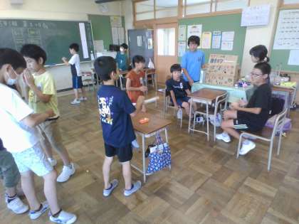 学級会で話し合い、1学期の終わりに夏祭りをすることになりました。今日はその夏祭りの日でした。今まで準備してきたことが発揮され、みんな笑顔で楽しんでいました。