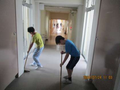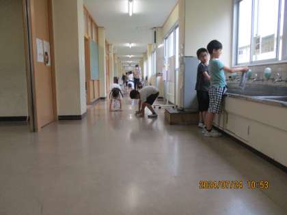 1学期最後の日、一生懸命に掃除をする子供たちです。心をこめて使った教室やロッカーに「ありがとう」を伝えていました。