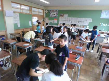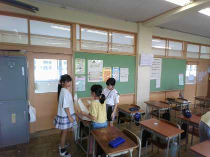 5年生の2学期がスタートしました。「2学期もがんばるぞ」とキラキラの笑顔を見せてくれた子供たちです。今日は、久しぶりに会ったクラスの仲間と「夏休みビンゴ」をしました。たくさんの友達と夏休みにしたことを聞き合いました。明日からも仲間と共に目標に向かって、元気に楽しくがんばっていってほしいです。