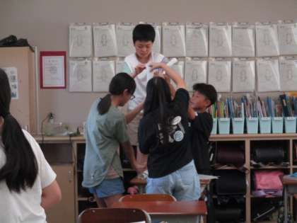 2学期最初の算数の時間に、紙でできるだけ高いタワーをつくる活動に取り組みました。紙を丸めたり、土台をつくってその上にさらに紙を立てたりして思考しながら楽しく高さを競いました。