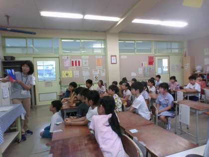 書写の時間には、ひらがな、カタカナ、漢字の書き方に気を付けて字を書きました。最後には、絵本の読み聞かせをしていただき、物語を真剣聞いている子供たちでした。