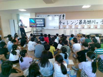 今日の朝学習で、9月6日(金)に行く校外学習の事前学習を行いました。どこにある、どのような場所に行くのかしおりやスライドを見ながら説明を聞きました。