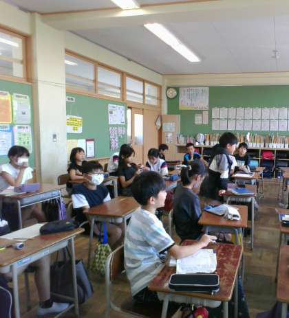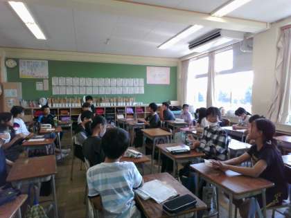 「どちらを選びますか」の学習で、「家族旅行で行くなら海か山のどちらか」という議題について討論会を行いました。子供たちは熱い気持ちで考えを伝えており、白熱した議論が繰り広げられていました。