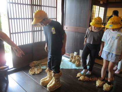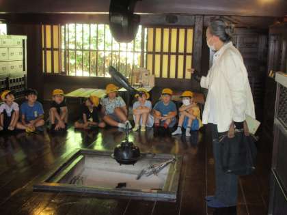 今日は3年生の校外学習でした。初めに民俗民芸村に行きました。古い家や昔の道具などを見学させていただき、子供たちは興味をもって見ていました。「こんなに太い柱があるのか。家を支えているんだって」「いろりを初めて見たよ。煙で天井が黒くなっていてびっくりしたよ」と、発見したことがたくさんあったようです。