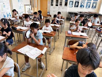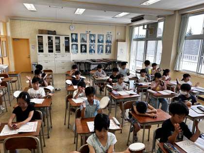 今日は、音楽の時間に2拍子の拍にのって、リズムを打つ授業をしました。カスタネットとタンブリンに分かれ、それぞれのリズムの面白さを実感しながら活動することができました。