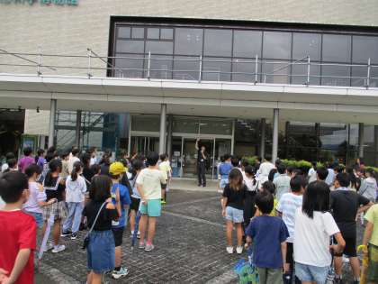 校外学習で富山市科学博物館に行ってきました。プラネタリウムでは、理科で学習している月や星の見え方や星座のお話を聞きました。プラネタリウムが暗くなり星でいっぱいになると、子供たちからは「わあー!」という歓声が上がりました。