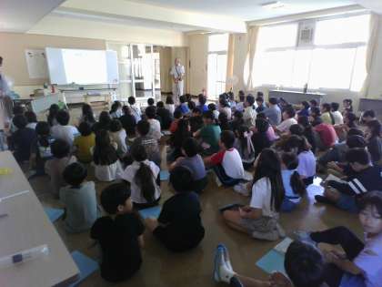 今日は、地球温暖化について学ぶ「環境チャレンジ10」の2回目が行われました。夏休みに地球温暖化を防ぐ取組を実践した子供たちは、その振り返りを通して地球温暖化防止のために自分に何ができるか考えていました。