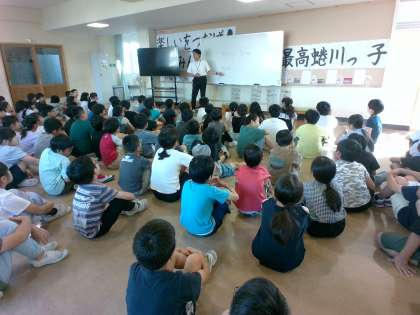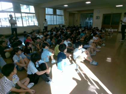 今日の朝活動の時間に学年集会をしました。今日はこれからの学年での予定を話しました。10月31日には学年で50メートル走の記録会があります。「4月より速くなるように朝トレがんばろう」と意気込む子供たちもいました。また、10月には、3年生だけのスポーツのイベントも企画しようと思っています。今から子供たちと話し合い、実行委員を募り、計画を立てていきたいです。
