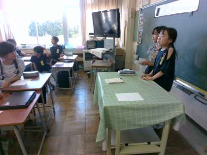 今日の学級活動の時間は、係活動でした。各係で企画したことを次々に発表し、みんなを楽しませていました。今日は、ダンス係、イラスト係、熟語係、お笑い係が発表しました。