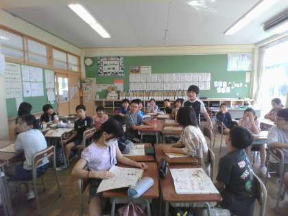 「ご飯とみそ汁をつくろう」の学習をしています。今日はグループごとに話し合った後、クラス全体でみそ汁の具「人気ランキング」を決めました。3位はワカメ、2位はねぎ、1位は豆腐でした。子供たちは、調理実習に向けて気持ちを高めている様子でした。