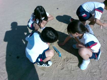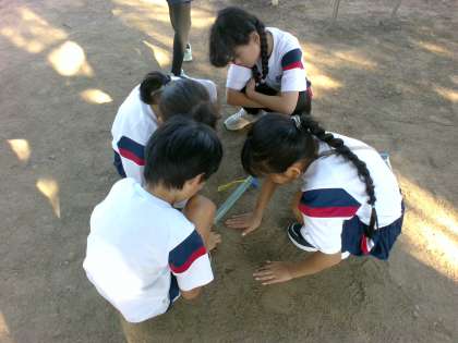理科では、日なたと日かげについて学習しました。太陽とかげについて思い起こしをしていたときに、日かげになっているところは涼しいはずだという考えが出て、今日、温度をはかって確かめてきました。日なたと日かげで温度が違うことはもちろん、午前より午後の方が地面が温められているということに気付いていました。