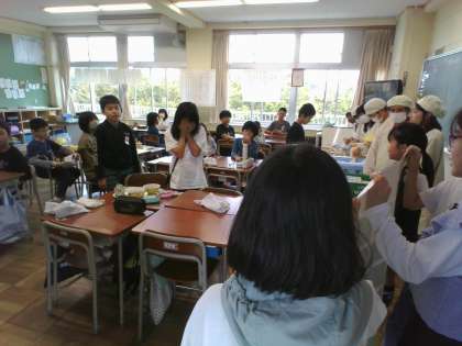 先週水曜の昼休みに5年生の合唱を聞かせていただき、2年生と3年生が書いた感想を5年生に届けました。