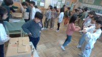 3年生の子どもたちが「発表会、がんばってください!」と伝え、感想を送ると、5年生からも「ありがとう!」「がんばるね!」と声が返ってきました。届けた3年生の子どもたちは笑顔いっぱいで教室に戻りました。