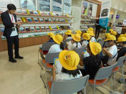 緑コースは、サッチとトヨタモビリティに行きました。サッチでは、料理や食材のこと等、トヨタモビリィティでは、お店や車のこと等、子供たちはたくさん質問していました。