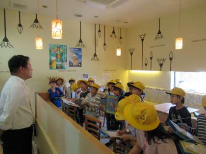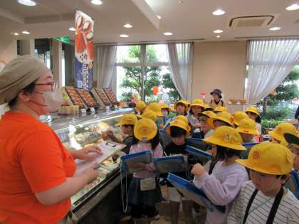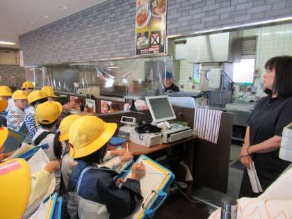 赤青コースは、「まるたかや」さん、「リブラン」さん、「満寿園」さんへ行きました。子供たちからは、お仕事での苦労や喜びについて質問があり、心のこもった回答を頂きました。どの子も真剣に聞いていました。人気メニューやお勧めの商品を教えてもらうと、「また来たい!」と目を輝かせていました。