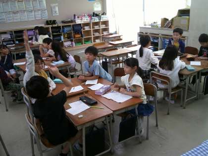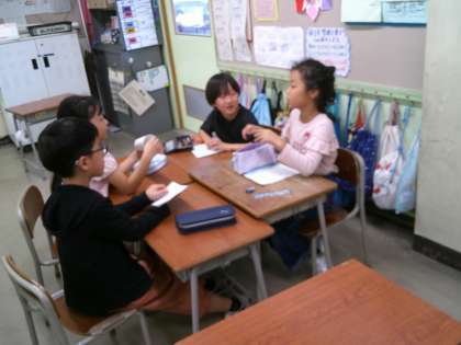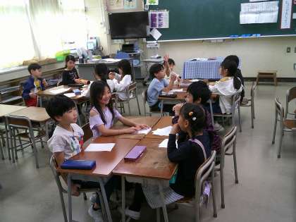 国語科「そうだんにのってください」の学習で、「集中力をアップさせるにはどうすればよいか」「当番の仕事を忘れないためにはどうすればよいか」等、日頃悩んでいることについて、グループで話し合いました。話題を提供する人は司会者になります。全員司会も経験することができました。各グループ、活発な話し合いが行われました。