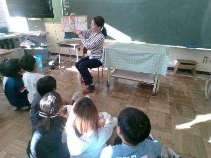 今日は読み聞かせでした。4組では「みんなでなっとうづくり」と「にんじゃシジュウカラのすけ」を読んでいただきました。「みんなでなっとうづくり」は、国語ですがたをかえる大豆の学習をしていることもあり、納豆の作り方について興味をもって聞いていました。「にんじゃシジュウカラのすけ」はいろいろな鳥が出てきてわくわくしながら聞いていました。また、シジュウカラの鳴き声についても学べ、楽しいお話でした。