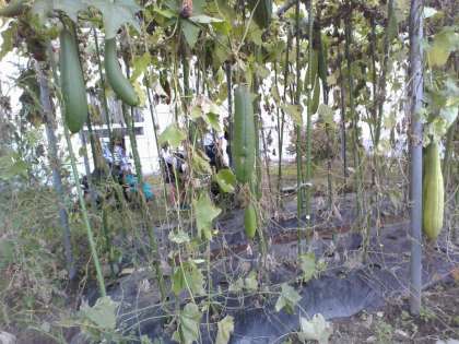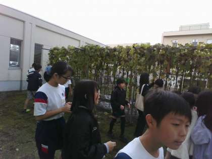 4年生では、「すずしくなると」の学習をしました。春から育ててきたヘチマの観察を行いました。子供たちは、秋になって色や形が変化しているヘチマの様子に気付いていました。