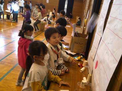 土曜日に家の人とおもちゃランドを楽しんだ子供たち。今日は、1年生とおもちゃランドをしました。「1年生は喜んでくれるかな」と、ちょっぴりどきどきしていましたが、「1年生が『楽しかったー』と笑顔で言ってくれてうれしかった」と、2年生も笑顔満開でした。