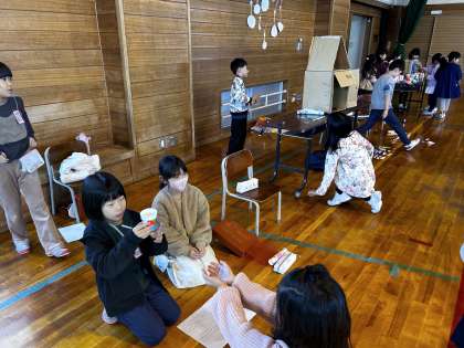 本日は、1年生をおもちゃランドへ招待してぽかぽかあそびランドを開催しました。約1か月間、おもちゃの制作からルール作り、遊び方等、子供たちで全てを企画して行うことができました。振り返りでは、「1年生が自分のおもちゃを使って遊んでくれて嬉しかった」「1年生の笑顔が見られて本当にがんばってよかった」などと発言する子供たちの姿がありました。達成感と喜びを味わい、大満足の子供たちでした。よくがんばりましたね!