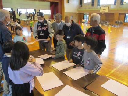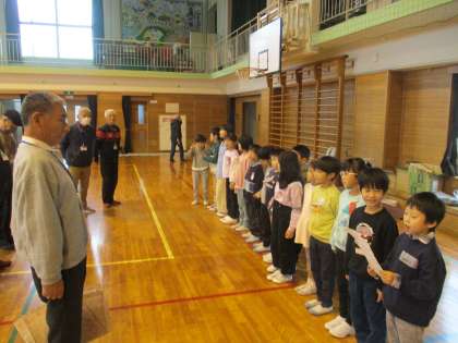 本日は、長寿会とのふれあい集会がありました。ブーメランでは、「回転してすごく飛んだから楽しかった!」竹馬・けん玉では、「竹馬が最初乗れなかったけど、乗れるようになったから今度も挑戦したい」「けん玉を教えてもらって上手になった!」などと笑顔あふれる子供たちの姿はとても素敵でした。