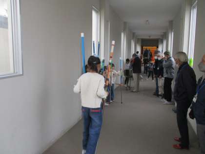 長寿会とふれあい集会 (ブーメラン、竹馬・けん玉)