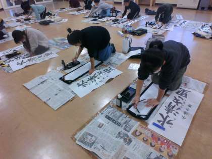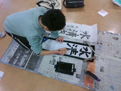 新年度の書初大会に向け、練習を行いました。これまでの学習を生かしながら「水清き里」の字を練習しました。