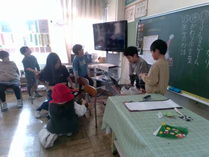 今日はクリスマス集会をしました。各係のゲームでやプレゼント交換をしてみんなで楽しみました。