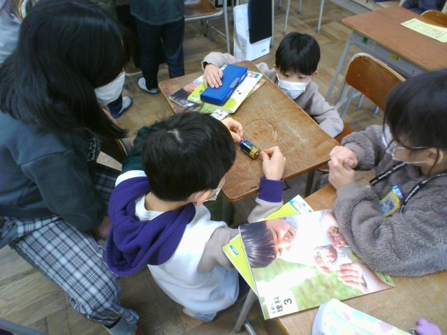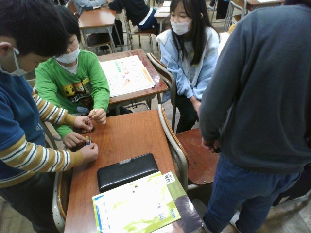 理科の学習では、豆電球に明かりを点ける方法を考え、実験しました。グループで協力して実験に取り組んだり、記録をしたりしながら学習を進めました。