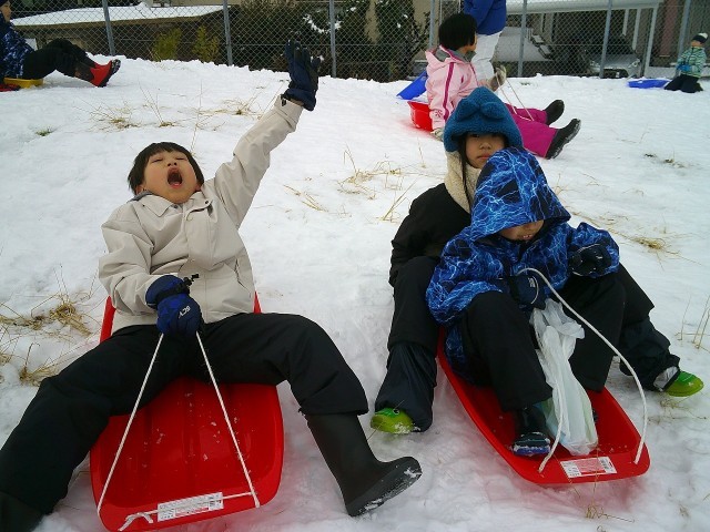 9日からの大雪で、大人は「安全に登下校できるかな」とドキドキしていましたが、ふたば級・こばと級の子供たちは積もった雪を見て大喜び!朝から「雪遊びできる?」「何限目にする?」とわくわくでした。5限目になると、はりきってウエアに着替え、そりを使って滑ったり、雪玉をつくったり、投げ合ったり、雪の上で寝転んだりとそれぞれの楽しみ方で思いっきり遊びました。みんなが誘い合って、仲良く活動できました。今日のように、みんなの笑顔が輝く3学期になりますように。