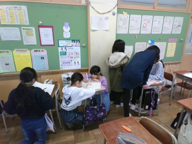 掲示係やスポーツ係、クイズ係等、それぞれの係に分かれて活動に取り組んでいます。