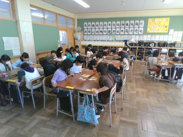 朝活動で五色百人一首をしました。24日(金)には、学年活動として「五色百人一首黄色大会」を企画しています。みんなで仲良く楽しんで、学年の仲間との思い出を増やしていきたいと思います。
