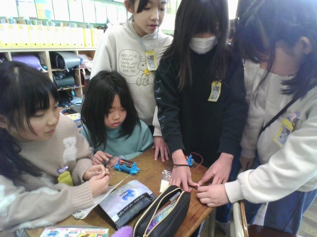 理科では、電池と豆電球を使って回路を作るという学習をしました。回路の途中に何を入れると豆電球がつくのかな?と子供たちは様々なものを予想し、意欲的に実験に取り組んでいました。