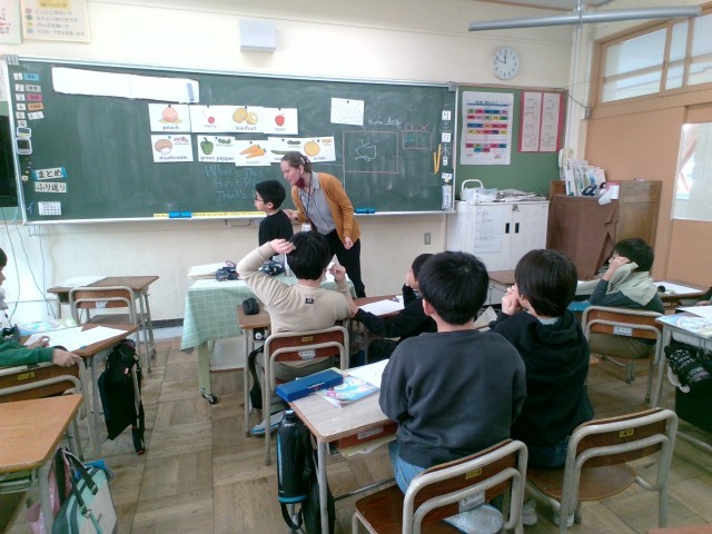 3学期も楽しく外国語の学習をしています。果物や野菜の名前を覚え、「これは何?」という問いに答えました。ペアや全体でゲームをし、楽しみながら何度も言い表すことができました。