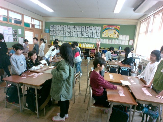 今日は百人一首のピンク大会でした。黄色大会に引き続き、白熱した試合が行われていました。一つでも上の句を覚え、それがとれるととてもうれしそうでした。努力することで「やってよかったな」「自分はけっこうがんばれたな」という思いが増えてきたのではないかと思います。この思いを勉強やスポーツにも生かしていけるといいです。