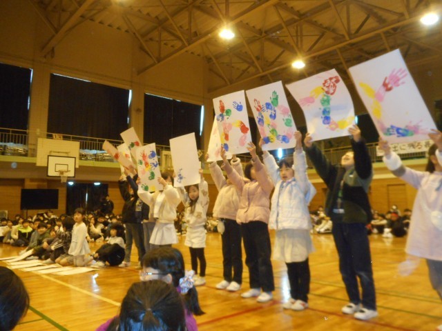 6年生さんのために、「ステキな6年生」を歌って踊りました。練習の成果を発揮できたようで、子供たちも楽しく踊ることができました。