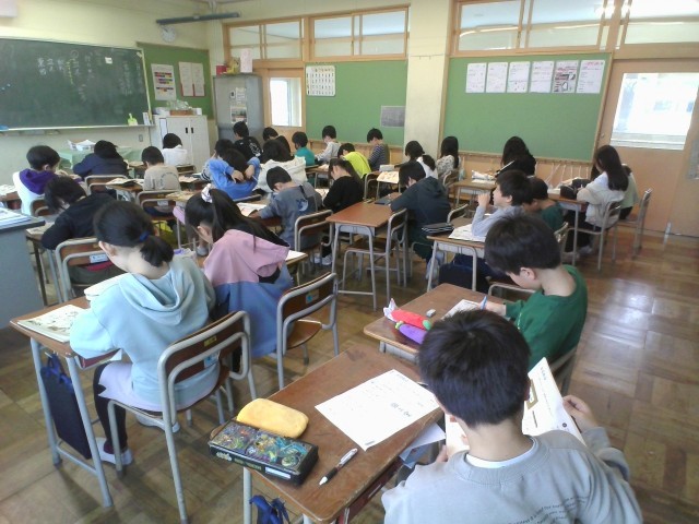 国語科硬筆書写の学習では、「行の中心」を意識して文字を書く練習をしました。3年生のまとめとして文章を書く学習でも、これまでに学習したことを生かして、一画一画丁寧に書く姿が見られました。