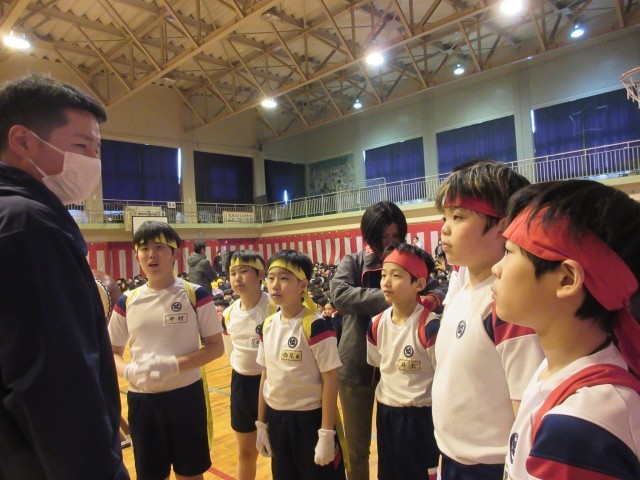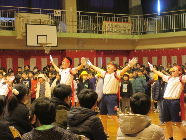 これまで下級生児童を支えてきてくれた6年生に、全校児童みんなでエールを送りました。その中心となって、5年生の代表児童が力強い声でみんなをリードしました。