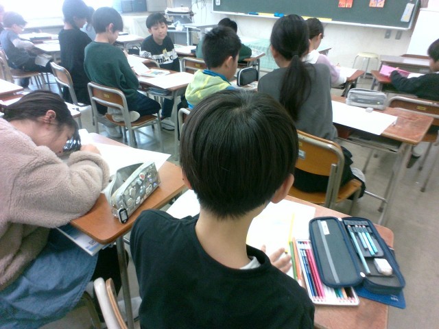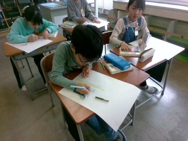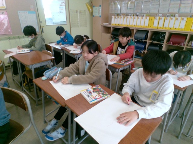 図画工作科の時間に「まぼろしの花」を描いています。今日は、まぼろしとはどのような花なのか、色や形、いつどこに咲く花なのかイメージを広げて下絵を描きました。どんな作品に仕上がるか楽しみです。