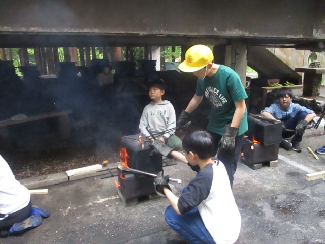 朝、掃除等を終え、いよいよ野外炊飯スタートです。