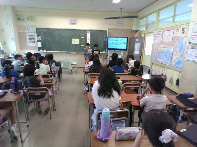 社会科では、毎日何気なく使っている「水のゆくえ」について学習しています。今日は、これまでに調べたことをスライドにまとめて発表しました。16日(月)の校外学習で、さらに学びを深めたいと思います。
