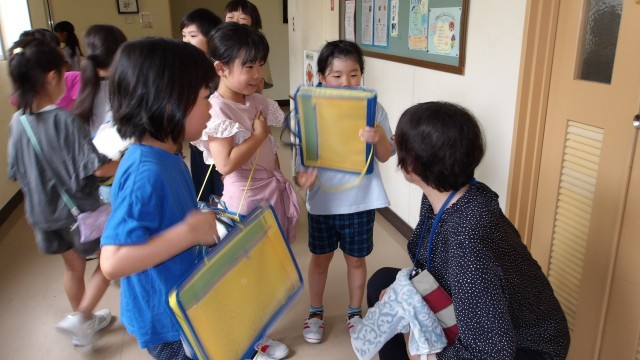 学校探検第2弾 なかよし大作戦に入りました。第1弾では、教室の場所や学校にある物を中心に見ました。第2弾では、先生方と仲良くなれるように、自己紹介やインタビューやサインです。