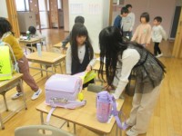 登校後は、ランドセルを片づけたり提出物を出したりして、準備を整えています。6年生を中心に、いろいろな学年のお兄さんお姉さんがお手伝いにきてくれています。