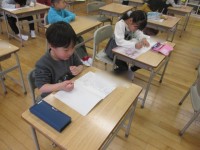 国語科では、食べ物の名前を伝えずに形や色、食べた感じ等を文章で伝えました。友達の表現を見て、よさを見付けたり、自分の文章を改善したりしようとする姿が見られました。